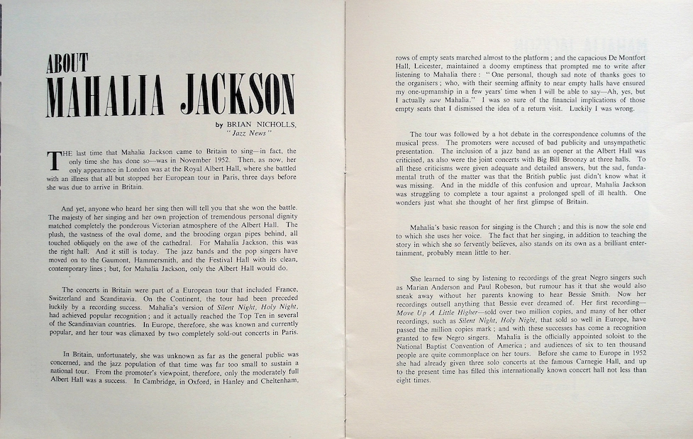 Mahalia Jackson, who still remembered her last, less successful performance at the Royal Albert Hall and was really hoping for a better result, wasn't disappointed.