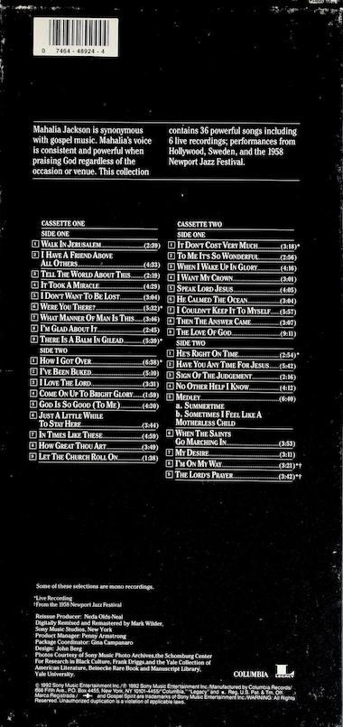 Examples of Mahalia Jackson albums that were also available on cassette: