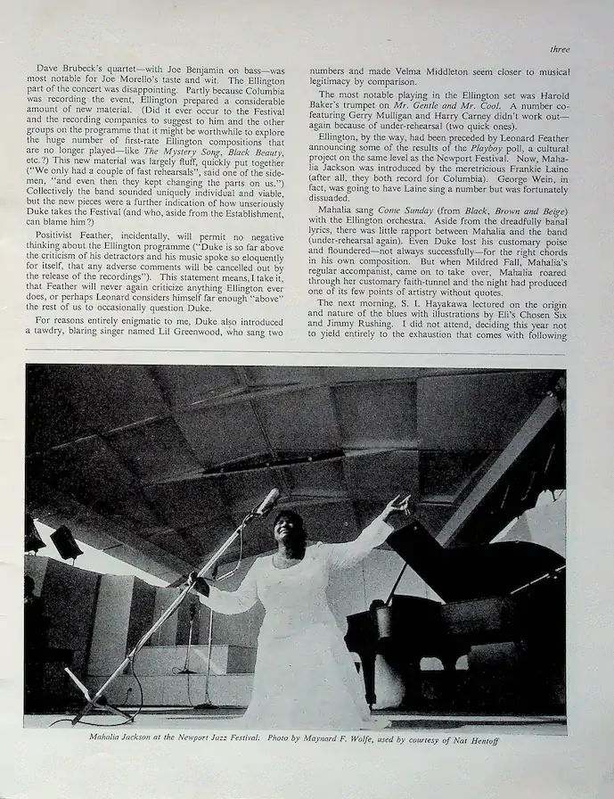 He wrote extensively about Mahalia's groundbreaking performance at the 1958 Newport Jazz Festival. This text is particularly important historically, as it analyzes how a gospel singer emotionally "converted" the traditionally more secular jazz audience.