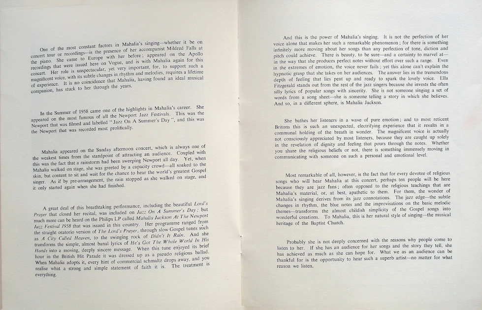Mahalia Jackson, who still remembered her last, less successful performance at the Royal Albert Hall and was really hoping for a better result, wasn't disappointed.